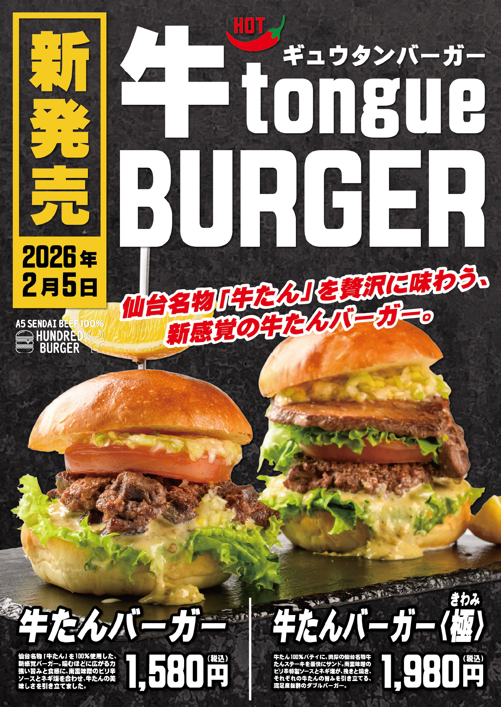 地元仙台をこよなく愛する彼らが、仙台牛を贅沢に使用し、宮城県産の素材にもこだわったハンバーガーをプロデュースしました!